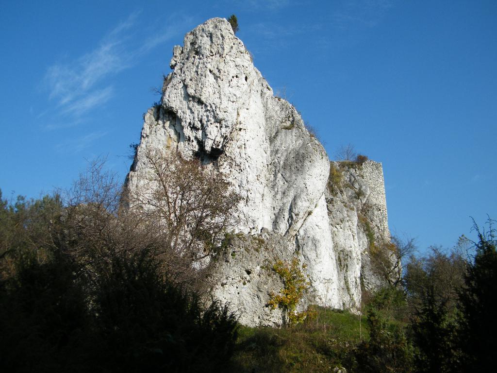 | 13. Ogólna ocena atrakcyjności obiektu: | Malownicze, strome skały ostańca wapiennego stanowią dużą atrakcję zarówno pod względem przyrodniczym, krajobrazowym, jak i kulturowym, ze względu na zachowane na wysokiej skale fragmenty 1,5-metrowej grubości murów średniowiecznej strażnicy. Na skałach wytyczono również liczne drogi wspinaczkowe. |