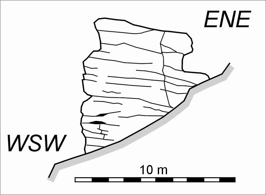 | 4. Opis geostanowiska: | Baszta-ambona skalna o wysokości 3 m od strony dostokowej (fot. 1) i 7,5 m od strony odstokowej (rys. 2, fot. 2) i ciekawym kształcie, któremu zawdzięcza swą nazwę (fot. 3) położona jest na prawym, stromym zboczu doliny rzeki Szewnianki zwanej też Kamionką. Skałkę budują jasnoszare, średnioziarniste piaskowce formacji ostrowieckiej (dolna jura, synemur). Warstwy piaskowca zalegają prawie poziomo, lekko pochylając się w kierunku północno-wschodnim (fot. 3), i wykazują bardzo nieregularną, grubo- i średnioławicową, płytową oddzielność poziomą. W piaskowcach przeważa laminacja pozioma, miejscami można zaobserwować zestawy warstwowań skośnych o przeciwnym nachyleniu lamin (fot. 4). Skałkę pokrywa mikrorzeźba, najbogatsza po zachodniej stronie skałki. Tworzą ją rowki i bruzdy, rozwinięte wzdłuż lamin oraz granic zestawów lamin, na które nakładają się bardzo liczne struktury komórkowe oraz typu klepsydrowego o bardzo różnych kształtach i wielkości (fot. 5).