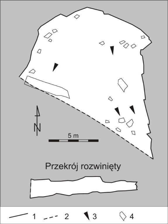 | 7. Inne mierzalne cechy: | Długość jaskini wg inwentarza: 17 m, deniwelacja niewielka. |