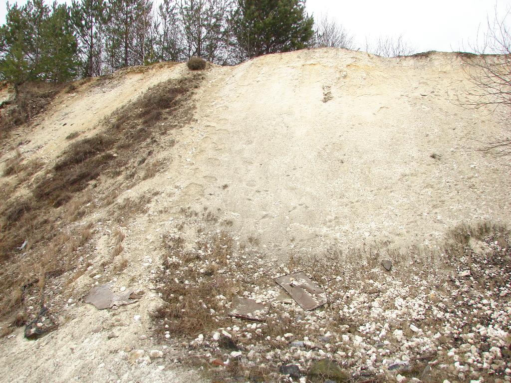 | 4. Opis geostanowiska: | Na północnym pograniczu wychodni skał miocenu i wychodni skał paleozoicznych Gór Świętokrzyskich znajduje się zarzucone odsłonięcie wapieni litotamniowych stopniowo zamieniające się w śmietnisko.